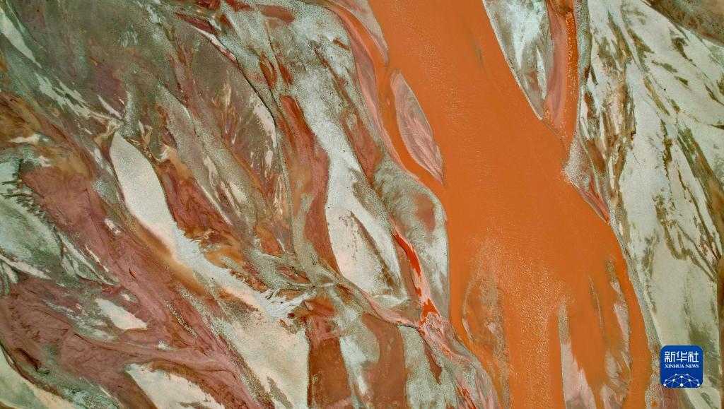 在沱沱河與當(dāng)曲匯合處的囊極巴隴拍攝的辮狀河道局部(7月26日攝,無人機(jī)照片)。新華社記者 劉詩平 攝