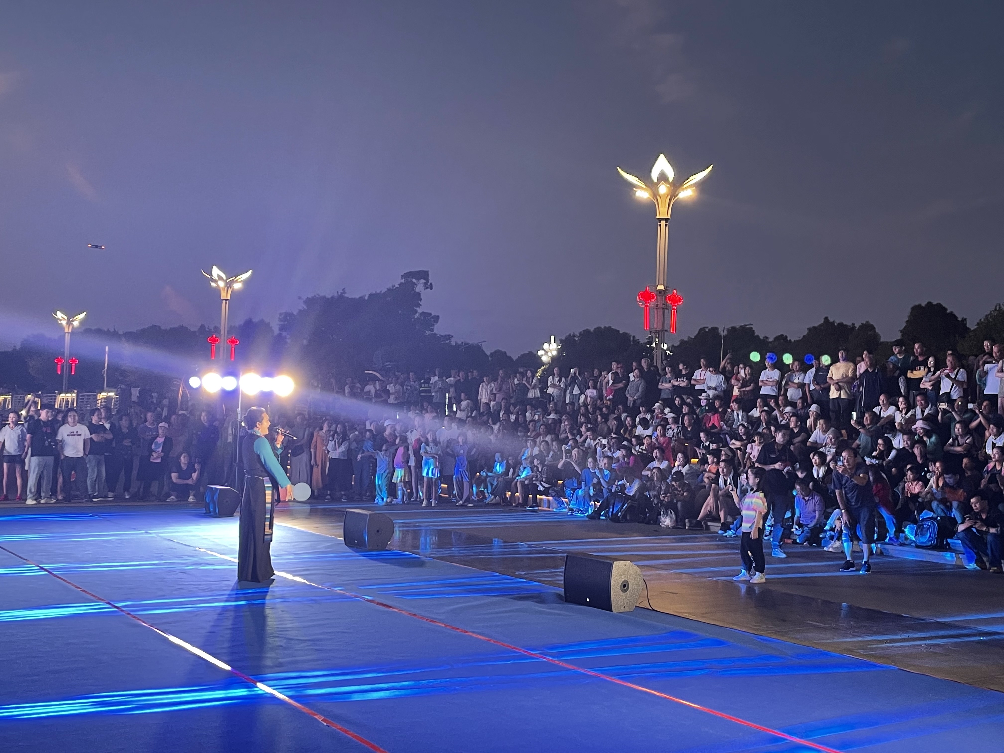 現(xiàn)場,迪慶州文化館的演員們用婉轉(zhuǎn)的歌聲、優(yōu)美的舞姿,為現(xiàn)場觀眾帶來了一場視聽盛宴。開場舞蹈《歡天喜地》以悠揚的旋律、奔放的舞步,瞬間引起了現(xiàn)場群眾的關(guān)注和歡呼。大家紛紛打開相機(jī),留下美好的瞬間。在接下來一個半小時的演出中,舞蹈《香格里拉鍋莊》《阿尺目刮》、弦子演奏《熱芭》、歌曲《卓瑪拉》《維西歡迎您》等精彩節(jié)目輪番上演,全方位詮釋了“奮進(jìn)迪慶”的獨特魅力,為現(xiàn)場觀眾獻(xiàn)上了一場融地方文旅特色和藝術(shù)內(nèi)涵于一體的視聽盛宴,加深了大家對迪慶的印象。