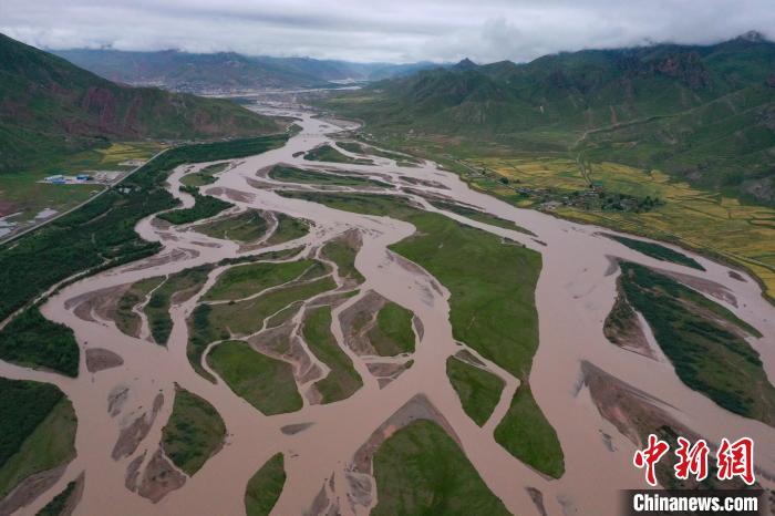 8月22日,航拍青海省玉樹藏族自治州囊謙縣境內(nèi)的扎曲河網(wǎng)狀水系。扎曲河是瀾滄江上游主要干流之一,縱橫交錯(cuò)的河水在群山中蜿蜒流淌,形成獨(dú)特的高原景觀。
