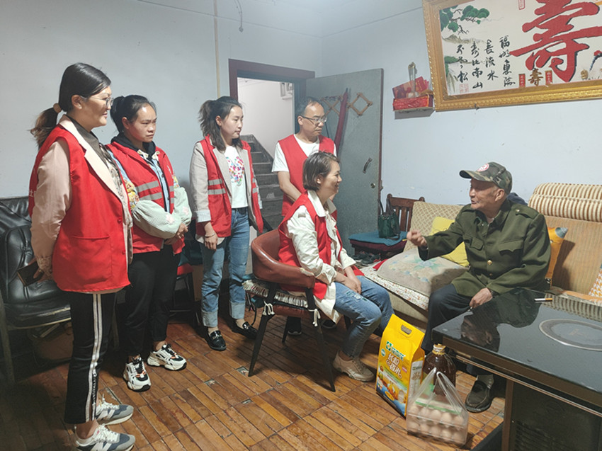 圖為光明社區(qū)工作人員慰問老人。