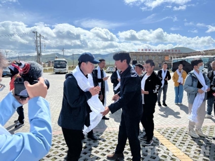圖為海外及兩岸華文媒體記者團抵達尕秀村