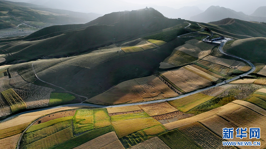 圖為青海省海北藏族自治州祁連縣境內(nèi)的秋日風(fēng)光(無(wú)人機(jī)照片)。新華網(wǎng) 楊春麗 攝