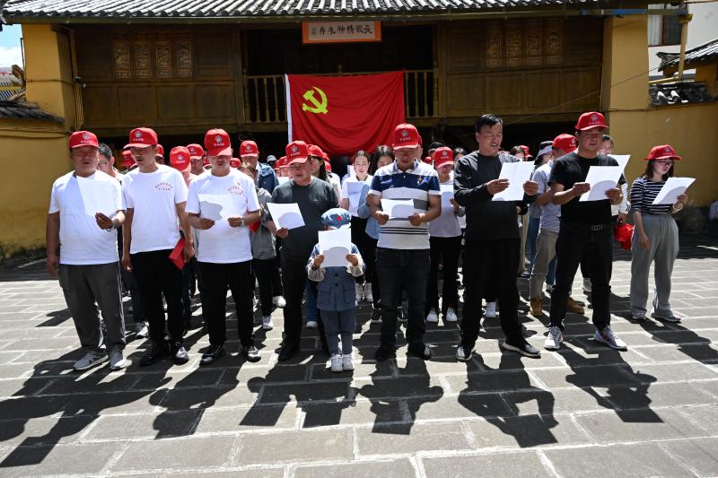 在姚家大院,州民中第二黨支部領(lǐng)學(xué)黨章,舉辦“守初心、擔使命,鑄牢中華民族共同體意識”主題教育講座,號召參學(xué)人員牢記當年金江人民助力紅軍北上的壯舉,深入學(xué)習(xí)和傳承紅軍精神。隨后,全體黨員重溫入黨誓詞,再次接受深刻的思想洗禮,鏗鏘有力的誓言表達了全體黨員對革命前輩的崇高敬仰,進一步強化了對黨忠誠、全心全意為人民服務(wù)的意識。