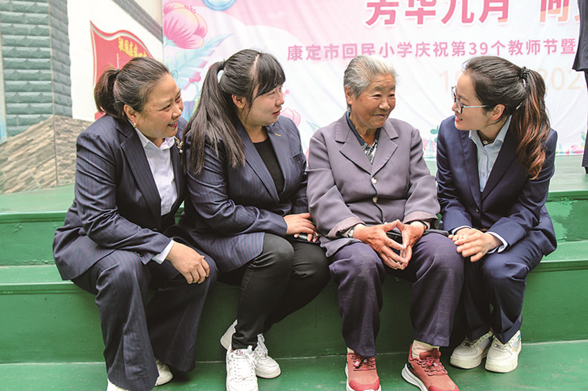 退休老師喬桂英和青年教師在一起