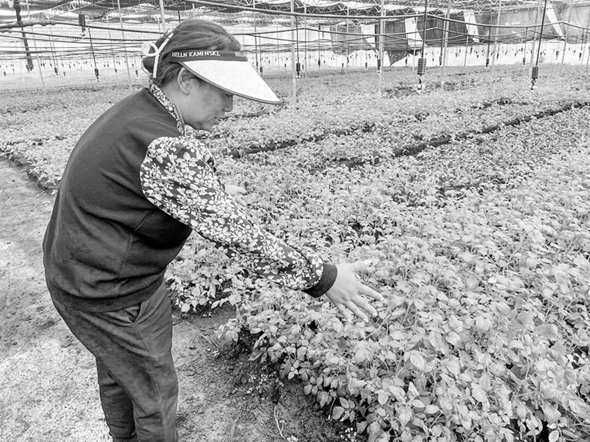 咱威村村民張春琴看著地里的馬鈴薯原原種種苗長勢旺盛,臉上寫滿了喜悅?!拔易约杭乙卜N了1畝多土豆,用基地的種子種出來的馬鈴薯個頭大、產(chǎn)量高,賣得起價。我現(xiàn)在一邊在基地干活,一邊跟著他們學技術(shù)?!睆埓呵俑嬖V記者,在家門口就能掙錢,自己很開心!