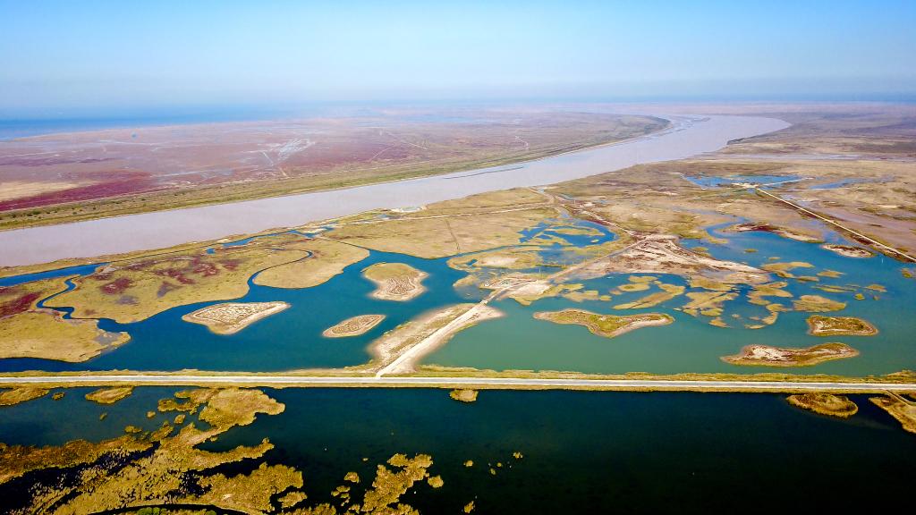近年來,黃河三角洲國家級(jí)自然保護(hù)區(qū)建成“引、輸、蓄、排”科學(xué)生態(tài)補(bǔ)水體系,同時(shí)著力構(gòu)建“河—陸—灘—海”連通體系,連通水系115公里,疏通潮溝76公里,恢復(fù)黃河與海洋的水文連通。原先的光板地、鹽堿灘,變成了水草豐茂、生物多樣性富集的大濕地。