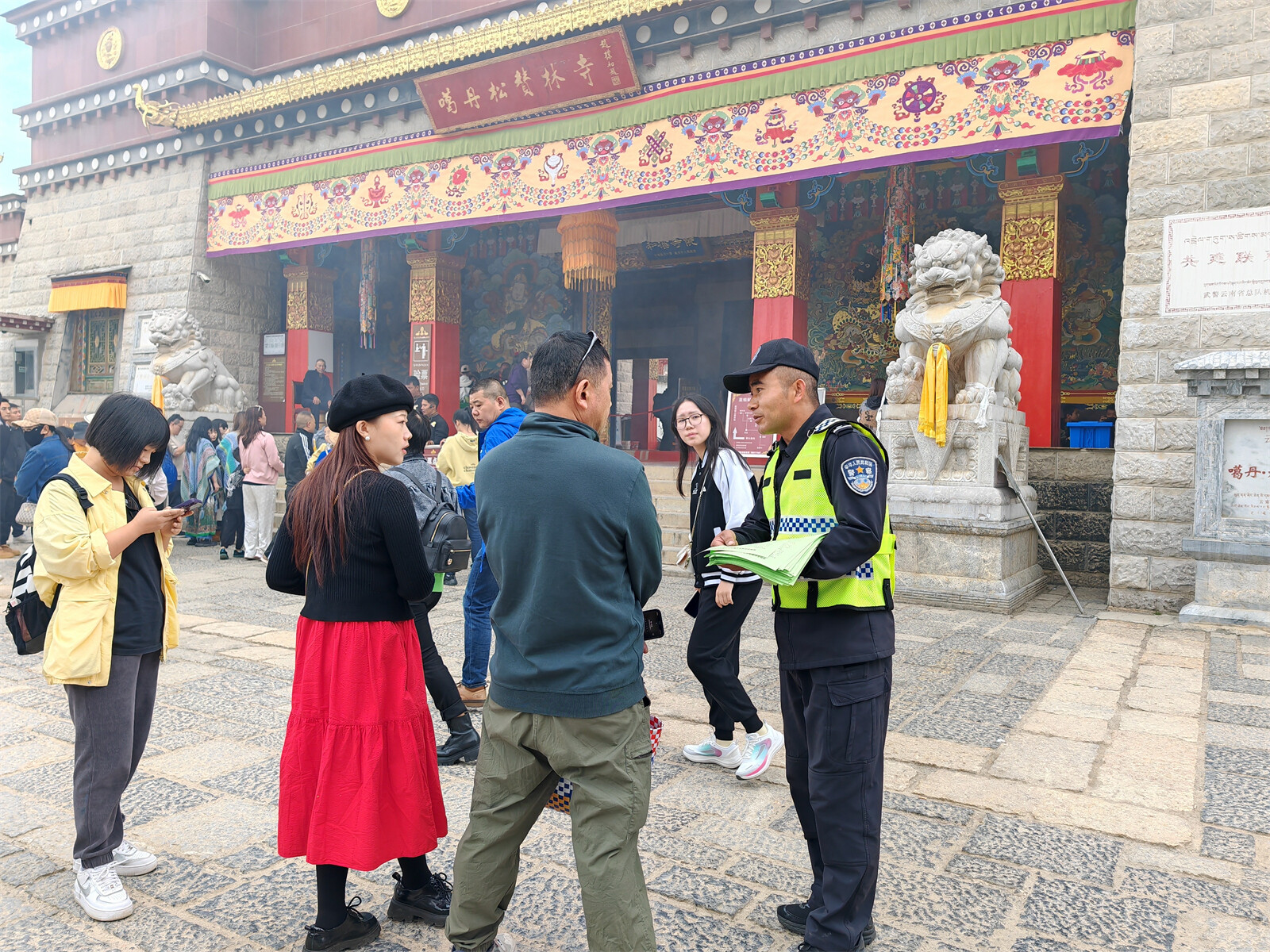 10月1日起,香格里拉市公安局直屬城市交警大隊組織民輔警走進(jìn)松贊林寺景區(qū)、納帕海景區(qū)開展交通安全宣傳活動,加強(qiáng)景點(diǎn)路面管控,確保國慶期間景區(qū)道路安全、有序、暢通。
