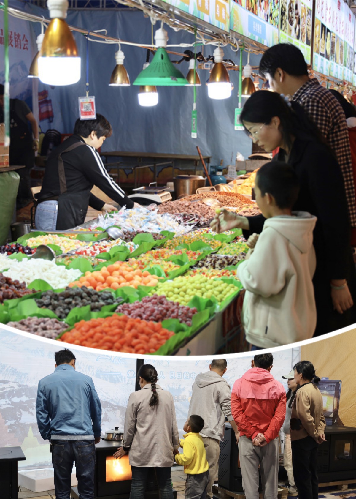“雙節(jié)”期間,香格里拉市區(qū)納赤東路上的國慶商品展銷會(huì)內(nèi)人頭攢動(dòng)。