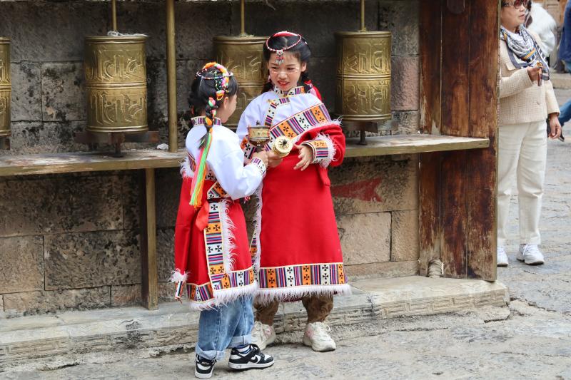 長假期間,獨(dú)克宗古城又掀起旅拍熱。走在獨(dú)克宗古城里,隨處可見身著藏族服飾、妝容精致的俊男靚女。“一梵攝影”店內(nèi),選服飾、選配飾、做妝造......來來往往的顧客絡(luò)繹不絕,“最近每天服務(wù)單數(shù)在四五十單左右,是長假之前的一倍多?!币昏髷z影的負(fù)責(zé)人說道。經(jīng)過化妝造型,游客們即刻變身美麗帥氣的卓瑪扎西,獨(dú)具民族特色的造型,配以古城的美景,深受游客的喜愛,大家紛紛以旅拍的方式給自己在旅途中留下一份美好的回憶。