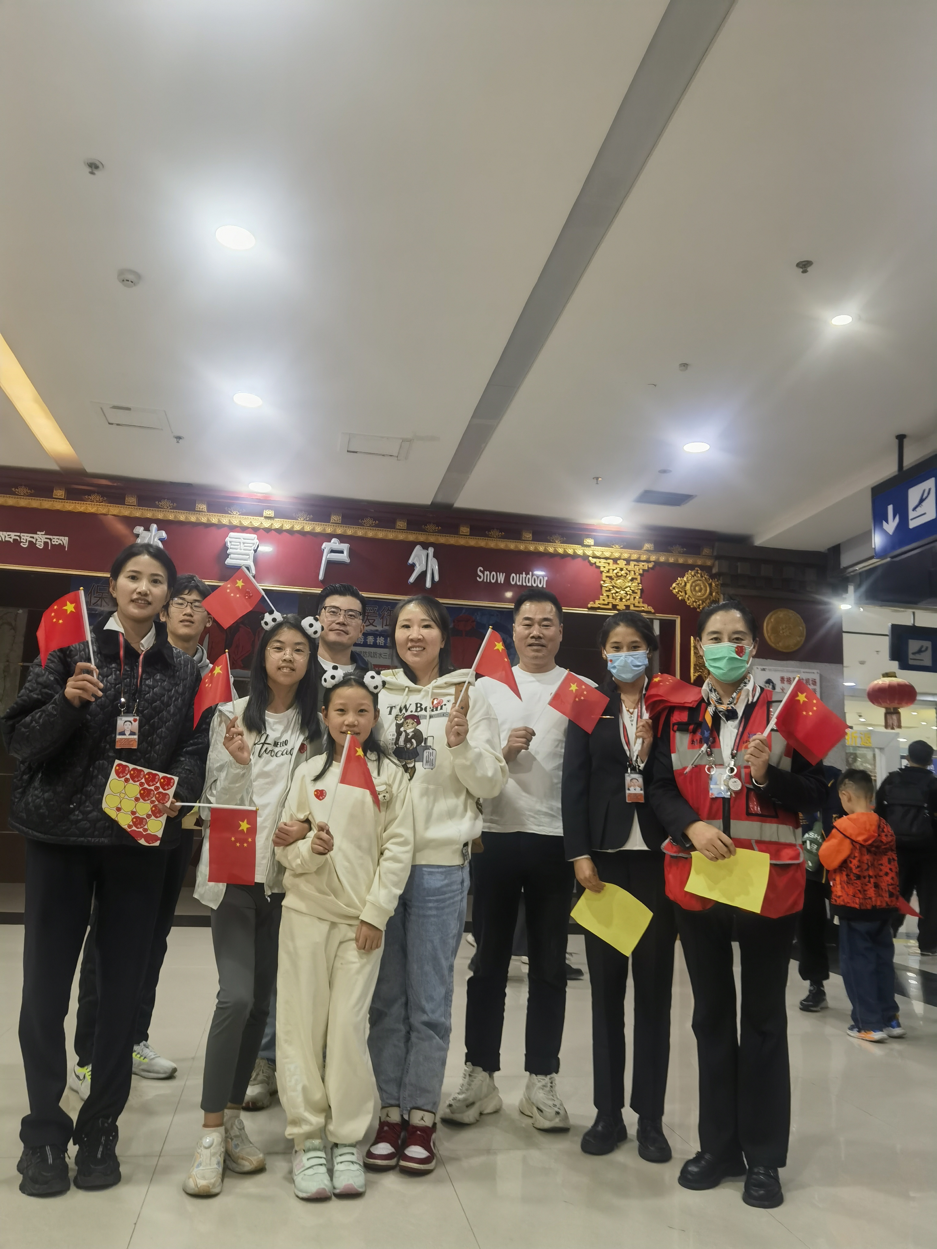 踐行真情服務(wù),提高服務(wù)質(zhì)量。節(jié)日期間,迪慶機場以力保航班正點率為重點,始終堅持將“旅客滿意”作為衡量服務(wù)工作的標(biāo)準,在候機樓設(shè)立志愿者服務(wù)站,積極為老、弱、病、殘、孕等特殊旅客提供服務(wù)。同時,工作人員身著民族服飾開展特色服務(wù),給旅客精心準備了具有云南當(dāng)?shù)靥厣脑嘛灱疤枪?,在旅客候機途中,為旅客準備了精彩的投壺游戲,并為參加游戲的旅客送去小禮品,讓旅客在歡聲笑語中度過漫長候機時間,并向旅客發(fā)放小紅旗和“我愛中國”小徽章,送上真誠的節(jié)日祝福,點燃了更多人的愛國情懷。