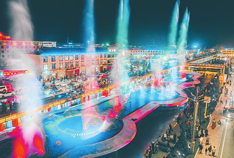 紅原縣城的新景觀——音樂噴泉。(圖片由紅原縣委宣傳部提供)