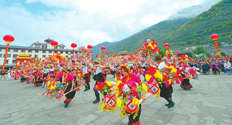 松潘的花燈舞,是松潘各民族大團結(jié)、和諧相處、共同繁榮的載體,也是民間文娛生活豐富的表現(xiàn)形式。澤讓闥 攝