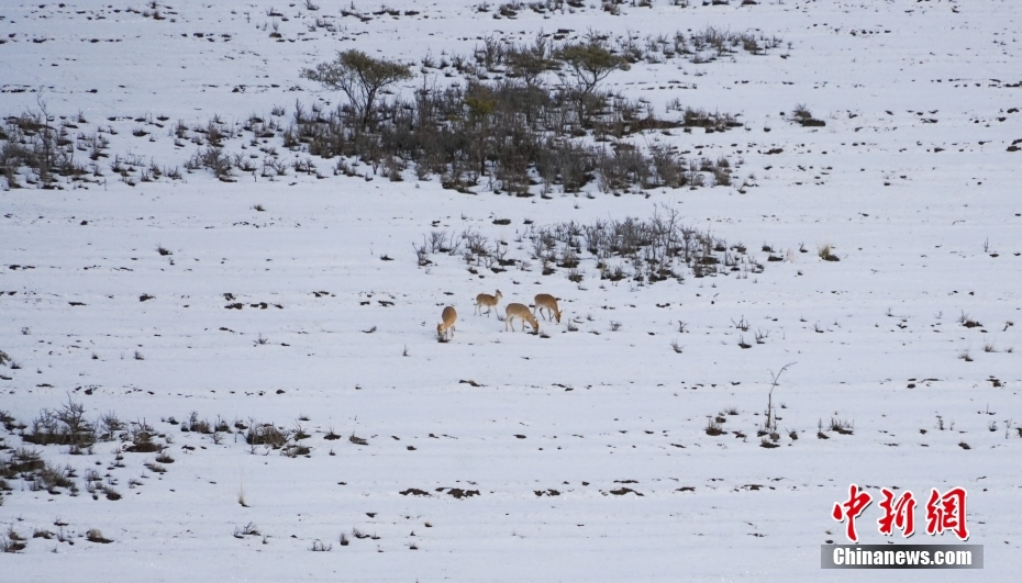 12日,在青海湖北岸的青海省海北藏族自治州剛察縣哈爾蓋“羚羊小鎮(zhèn)”,成群的普氏原羚在雪中覓食、漫步。[詳細]