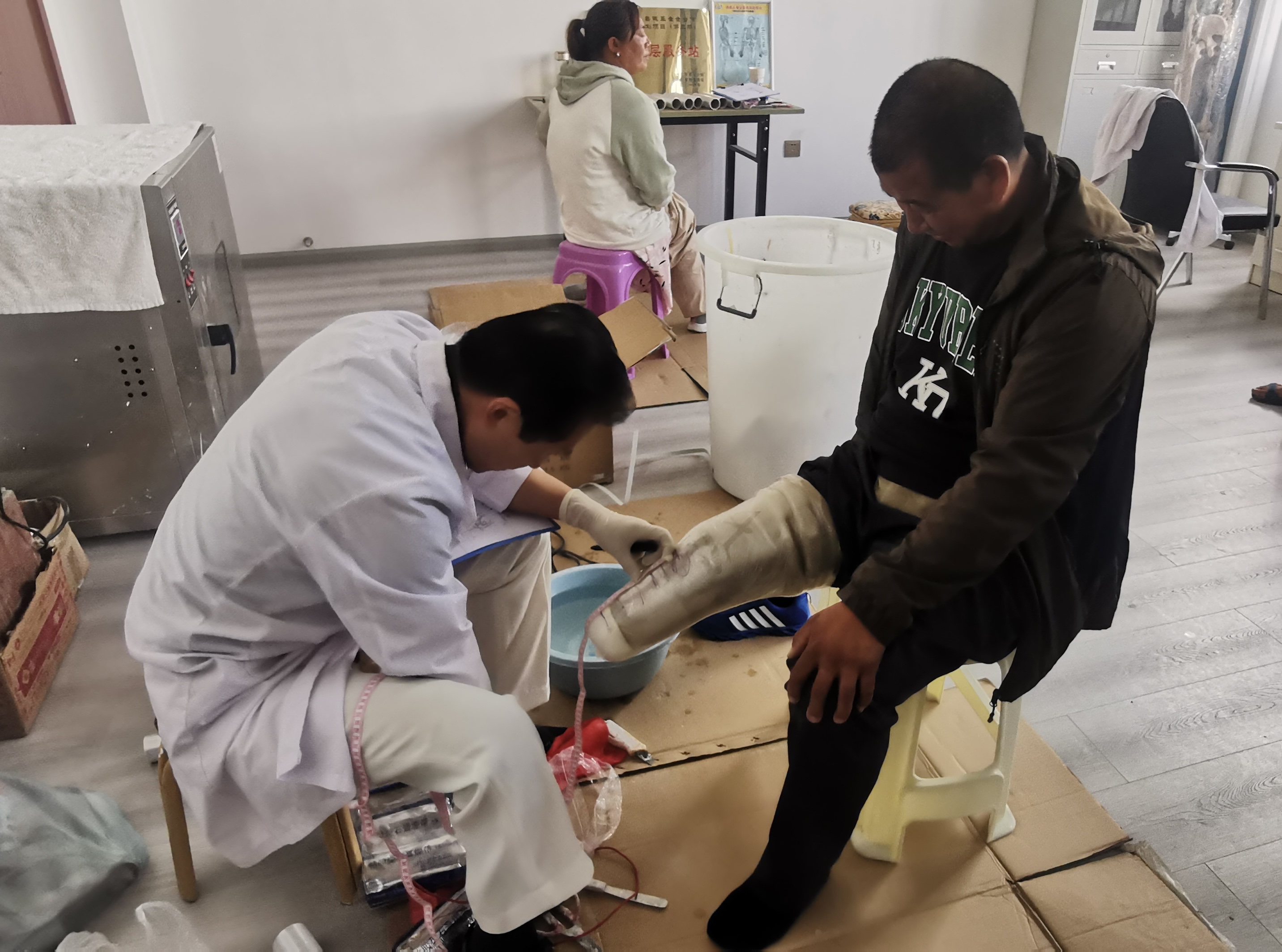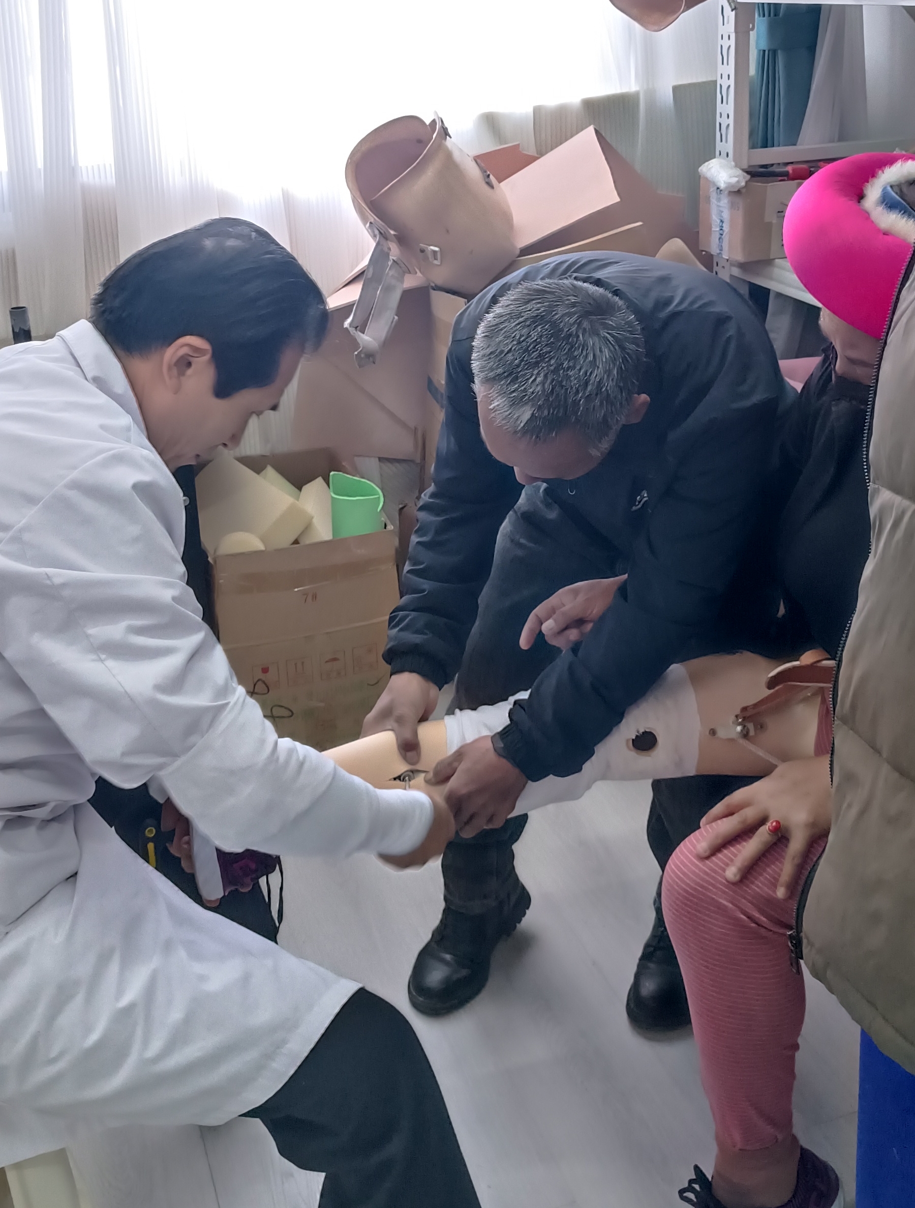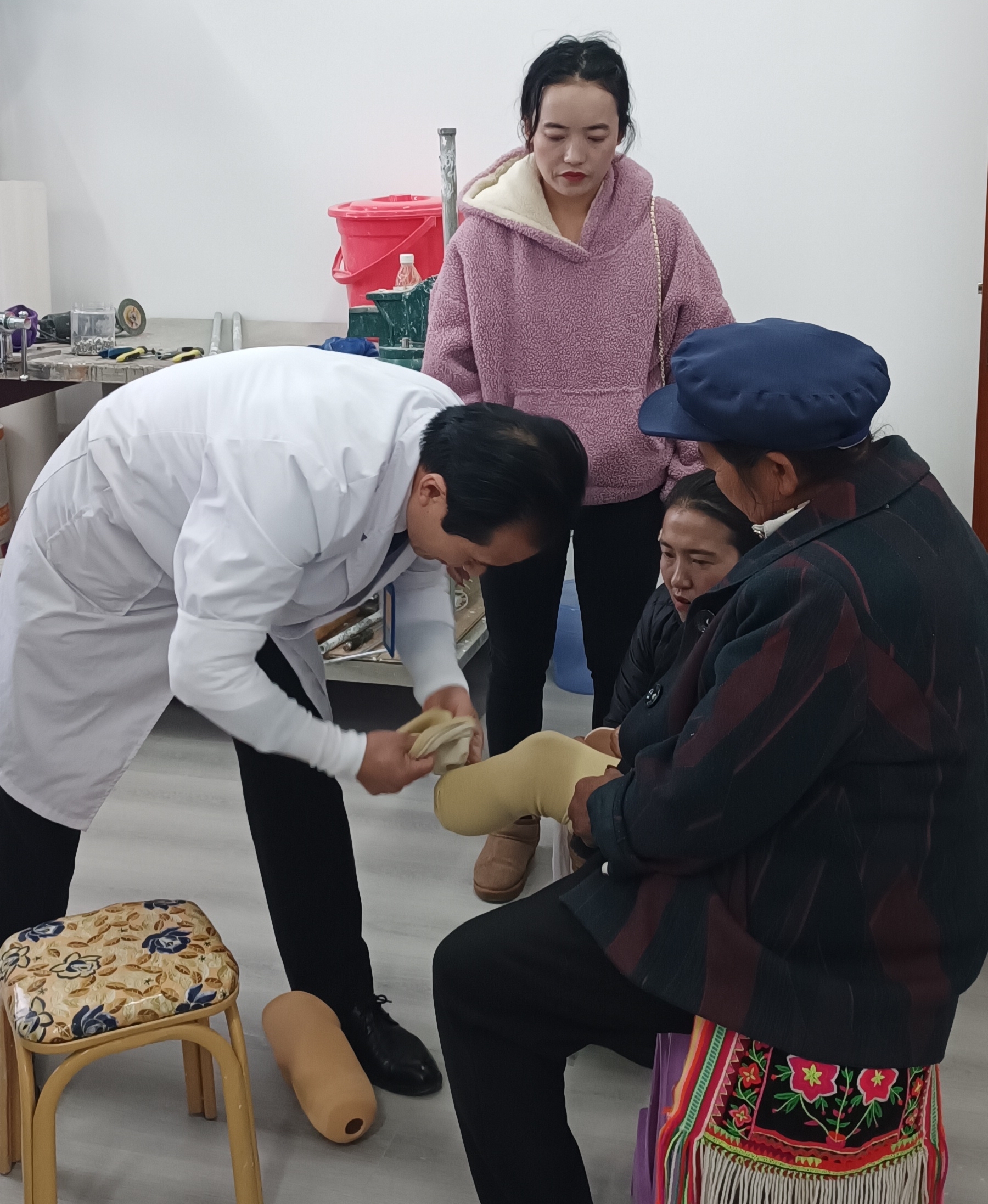 近日,在州康復(fù)中心,隨著30名肢體殘障群體的假肢適配成功,2023年省級(jí)殘疾人事業(yè)彩票公益金助聽(tīng)器、假肢適配服務(wù)項(xiàng)目圓滿結(jié)束。據(jù)了解,該項(xiàng)目在今年還為我州300名聽(tīng)力殘障群體免費(fèi)適配助聽(tīng)器。圖為醫(yī)生為肢體殘障人士適配假肢。