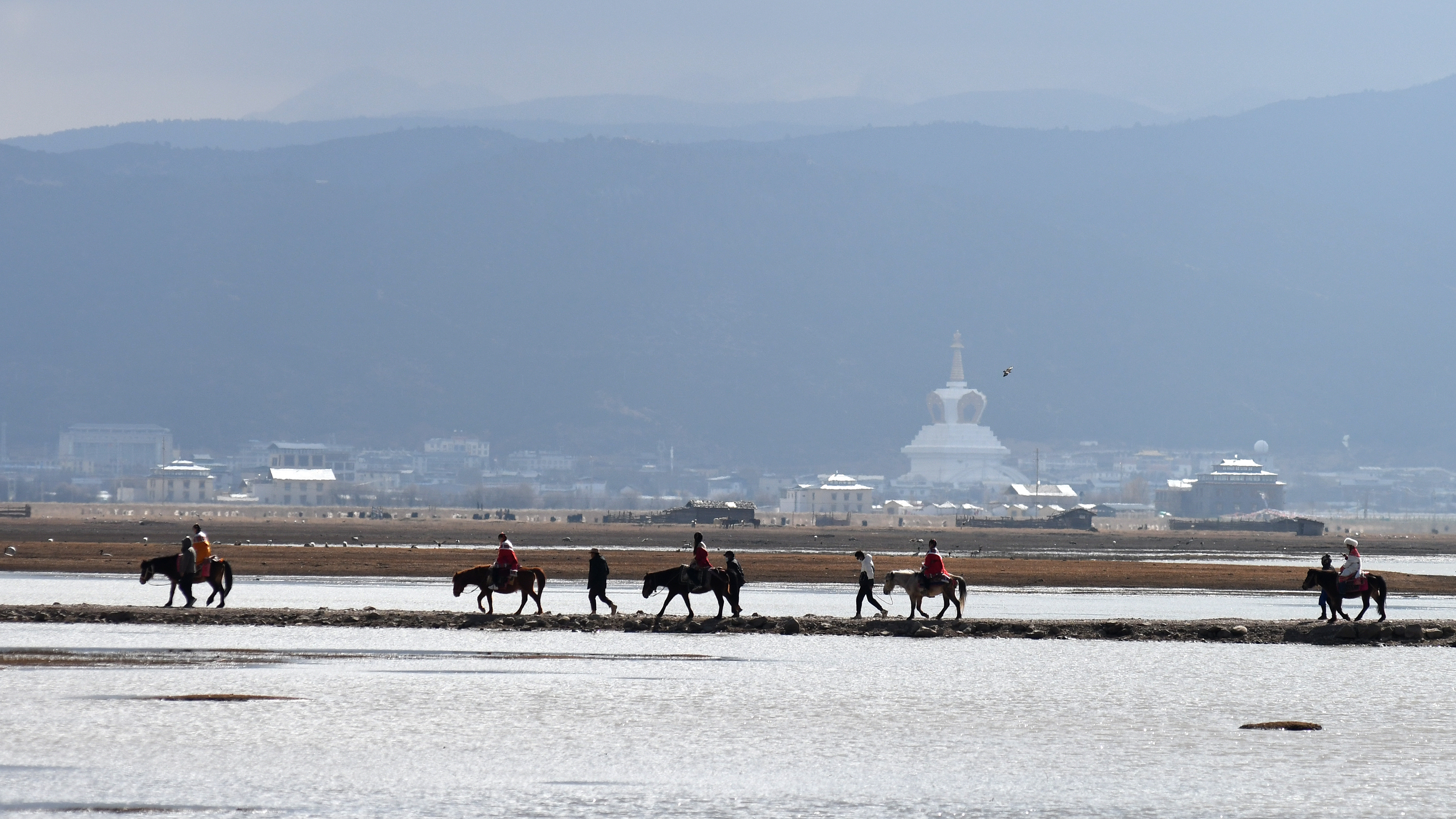 冬季的普達(dá)措景區(qū),林濤載水聲,藍(lán)天伴幽湖,寧靜無喧囂;冬季的納帕海,皚皚白雪成為了黑頸鶴、黑鸛、白尾海雕、斑頭雁等珍稀的鳥類自由作畫的繪本;冬季的噶丹·松贊林寺,當(dāng)?shù)谝豢|陽光灑向寺廟的金頂,若隱若現(xiàn)的云霧和裊裊桑煙下藏著人間仙境;冬季的獨克宗古城,綿綿白雪裝飾著藏式民居,穿著民族服裝的人們踏著青石板路緩緩走過,美好而生動。