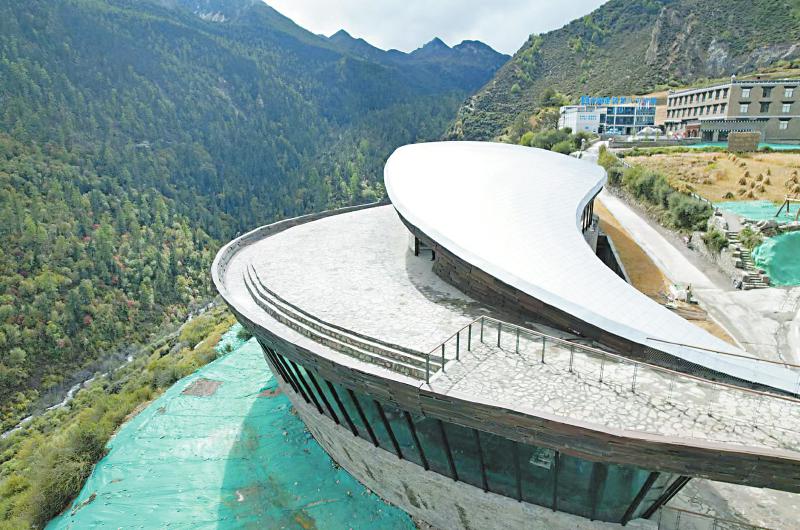 走出展廳就到了“亞丁陽(yáng)臺(tái)”,項(xiàng)目總設(shè)計(jì)師、中建西南設(shè)計(jì)研究院總建筑師劉藝介紹,陽(yáng)臺(tái)與村子以橋相連,其創(chuàng)意是讓游客在感知天地遼闊之后,轉(zhuǎn)身又可回歸煙火生活。