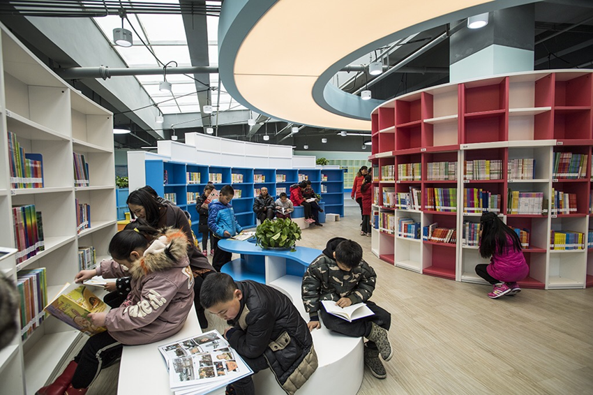 圖為學(xué)生和家長(zhǎng)在圖書館閱讀書籍。