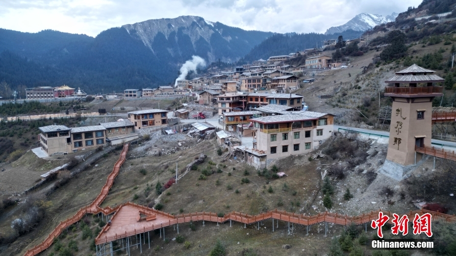 11月3日,航拍甘肅省甘南藏族自治州迭部縣扎尕那景區(qū)藏族村落的建筑。(無人機照片)中新社記者 九美旦增 攝