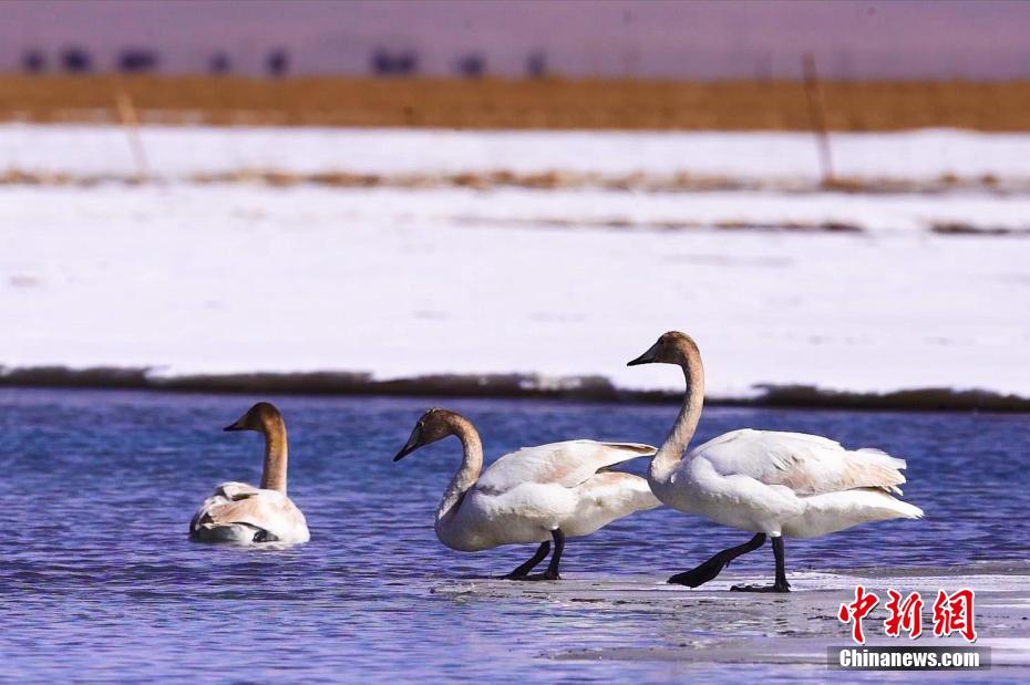 圖為成群大天鵝在青海湖中游弋休憩。包雷 攝