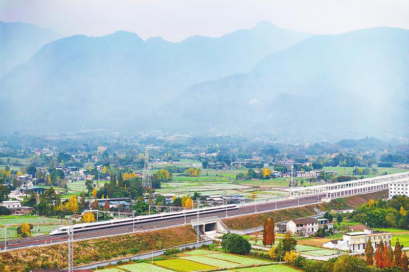 11月23日,試跑動(dòng)車(chē)組行駛在綿陽(yáng)市安州區(qū)境內(nèi)。 四川日?qǐng)?bào)全媒體記者 何海洋 攝