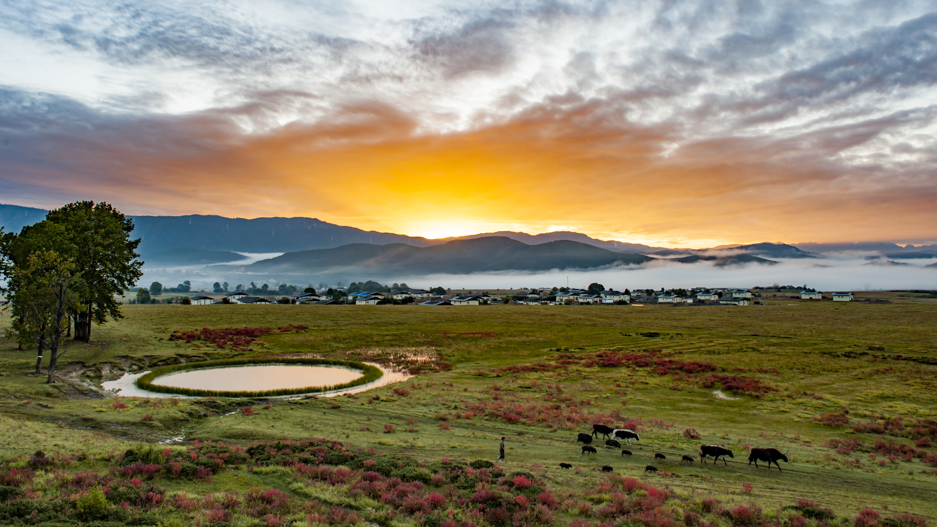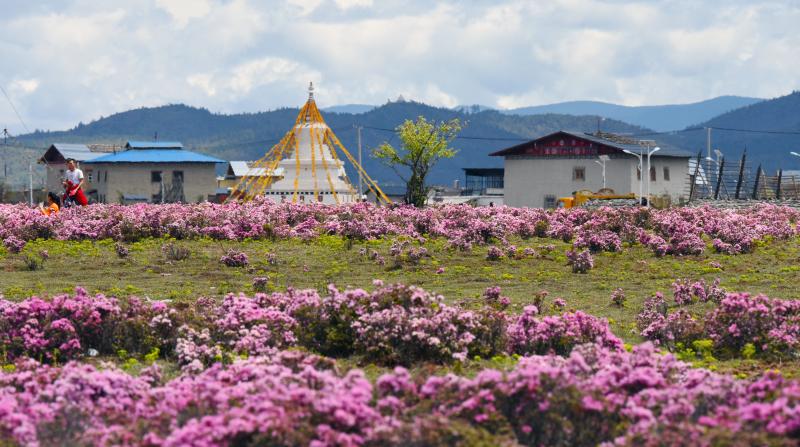 每年5月下旬至6月中旬,小中甸草原就會被多彩絢爛的杜鵑花、狼毒花以及各種不知名的小花小草包圍,變成一片花的海洋,吸引來自各地的游客駐足。這時的小中甸,每個角度都是美景,花海連著傳統(tǒng)藏族民居,以及遠處的雪山和森林,恍若走進了神話中的仙境,這里也是人們拍寫真照、婚紗照的絕好取景地。