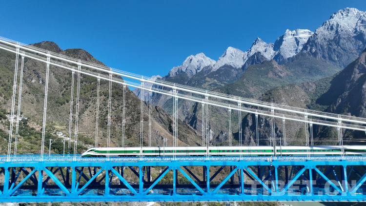 圖為“復(fù)興號”動車行駛在金沙江特大橋上 中國鐵路昆明局集團有限公司供圖
