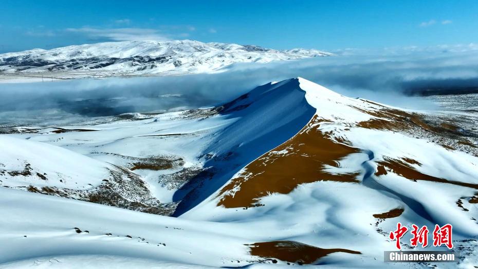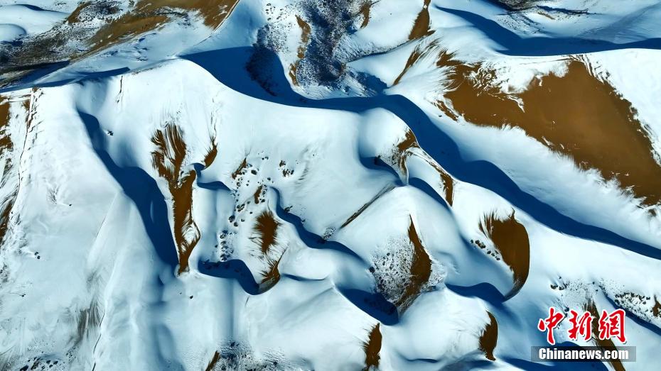 12月中旬,高原青海迎來新一輪寒潮。在青海湖北岸的青海省海北藏族自治州海晏縣,攝影師在金沙灣拍攝到雪落金沙的冬日景色。航拍鏡頭下沙與雪的色彩明暗交錯、波瀾起伏,宛如大自然為大地“咖啡”“拉花”,藍(lán)白交織的純凈讓人心曠神怡。雪后初晴,云河在沙丘間流動,時(shí)而隨著氣流“流入”青海湖,沙丘背后的蔚藍(lán)湖水,也讓景色變得奇幻優(yōu)美。青海湖是中國最大的內(nèi)陸高原咸水湖,是維系青藏高原東北部生態(tài)安全的重要水體,也是控制西部荒漠化向東蔓延的天然屏障。