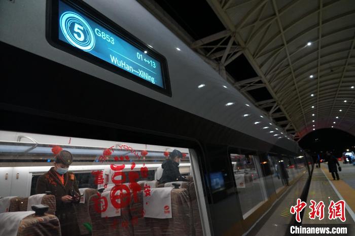 圖為1月10日,由武漢首發(fā)的復(fù)興號(hào)智能動(dòng)車組列車G853抵達(dá)終點(diǎn)站西寧。中新社記者 馬銘言 攝