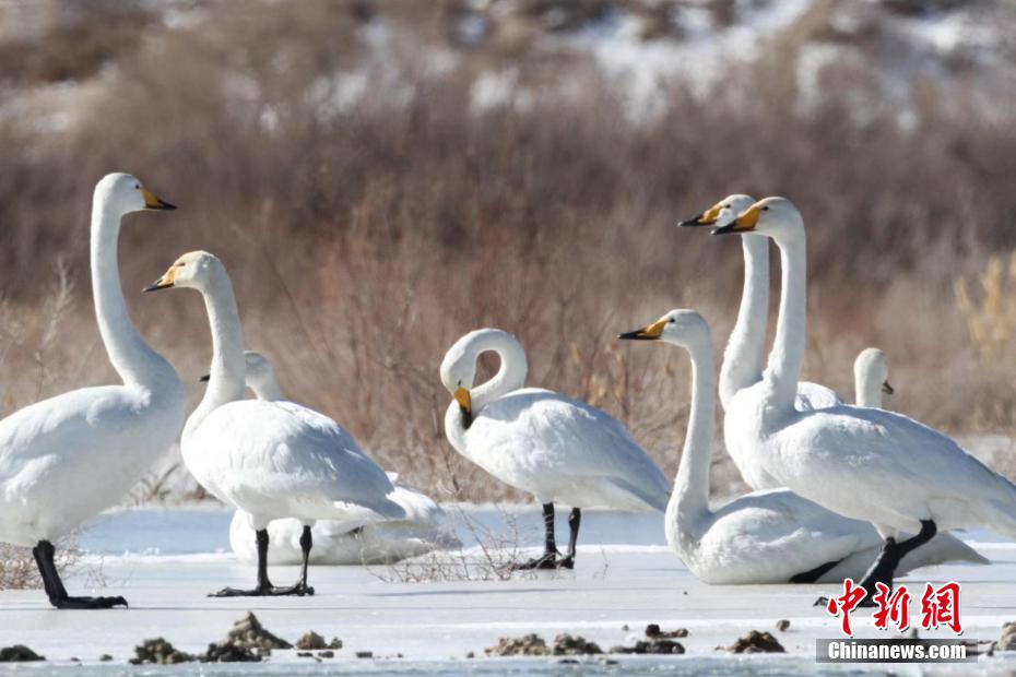 多只天鵝在湖冰上嬉戲。青海可魯克湖-托素湖省級(jí)自然保護(hù)區(qū) 供圖