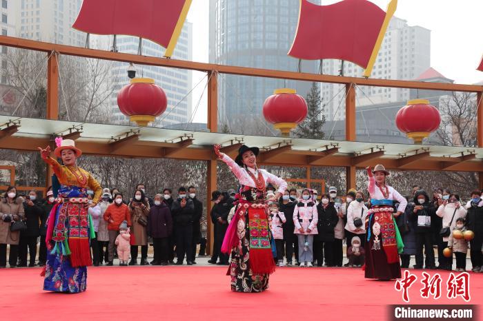資料圖為在西寧市中心廣場(chǎng),民眾欣賞民族服飾秀。馬銘言 攝