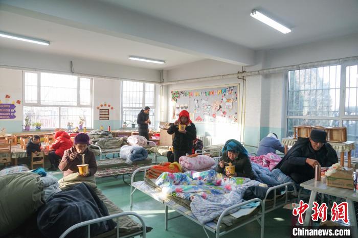 資料圖為在青海省海東市民和縣中川鄉(xiāng)美一小學(xué)的震區(qū)集中安置點(diǎn)內(nèi),受災(zāi)民眾正在吃早餐。馬銘言攝