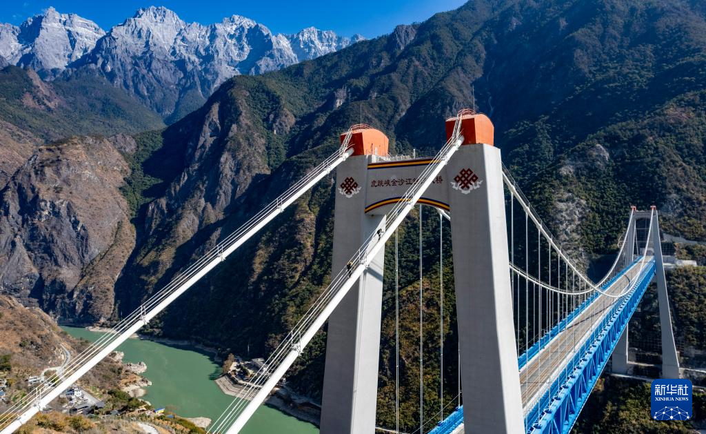 虎跳峽金沙江鐵路大橋位于云南麗江與香格里拉交界處的虎跳峽景區(qū),橫跨金沙江,全長882.5米,主跨達660米,橋面離江面垂直距離約250米,大橋兩端分別與玉龍雪山隧道和哈巴雪山隧道連接,是麗香鐵路重點控制性工程。