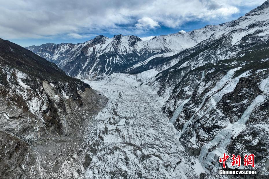 2月2日,四川省甘孜藏族自治州瀘定境內(nèi),一場雪后的貢嘎山披上了厚厚的“白紗”,在貢嘎山東坡順山而下的冰川沿海螺溝山谷綿延10多公里,就像一條“巨龍”盤在山谷中,十分壯觀。貢嘎山坐落于橫斷山系大雪山中段,主峰海拔7756米,被譽為蜀山之王。海螺溝冰川也是貢嘎山數(shù)十條冰川中規(guī)模最大、形態(tài)最美的一條。經(jīng)歷了2022年“9·5”瀘定地震后,海螺溝景區(qū)道路等重建工作完成,步游道、旅游服務(wù)設(shè)施升級,游客逐步回升。航拍鏡頭下的海螺溝冰川粒雪盆下端的“冰川冰”。記者 劉忠俊 攝