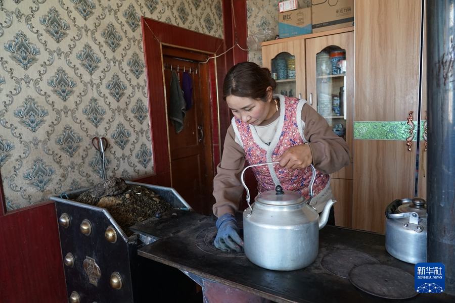 1月27日,普毛東主的妻子正在煮奶茶。新華社記者 解統(tǒng)強 攝