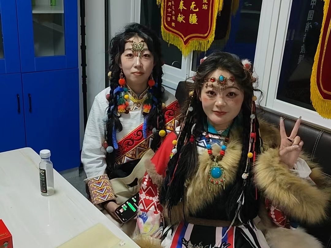 1月30日下午17時(shí)20分許,服務(wù)站迎來兩位身著藏式服裝的“卓瑪”。經(jīng)隊(duì)員了解得知,兩位“卓瑪”是外地過來旅游的,準(zhǔn)備到寺院內(nèi)部去旅拍,手上的包實(shí)在太重了,希望可以把包寄存在服務(wù)站內(nèi)。隊(duì)員立即接過她們手中的包將其安置好,并細(xì)心問到包內(nèi)是否有貴重物品之類的,確定好包內(nèi)的物品后便向他們說道:“兩位小姐姐,你們就安心去拍攝吧,不著急,拍完后回到這里取你們的東西就可以了,我們給你們守著?!彪S后兩位來自遠(yuǎn)方的“卓瑪”便開始了他們愉快的旅拍。其實(shí)大家都知道,這場旅拍沒有1個(gè)小時(shí)是不可能結(jié)束的,而這個(gè)點(diǎn)也快接近了隊(duì)員們歸隊(duì)吃晚飯的時(shí)間點(diǎn)了,但是隊(duì)員們沒有考慮吃飯的事,他們想的只是為素不相識的遠(yuǎn)方朋友盡一份義務(wù),讓他們的旅拍之行無后顧之憂。19時(shí)30分左右,兩位“卓瑪”回到了服務(wù)站,隊(duì)員隨即邀請他們坐下來休息會喝杯熱水,夜晚天氣較冷讓他們先烤會火暖一下身子再出發(fā)。