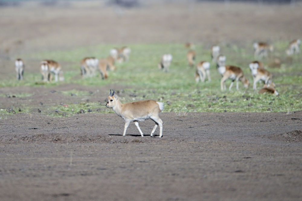 昂起頭顱,嬉戲奔跑,在海北藏族自治州剛察縣哈爾蓋大草原,普氏原羚歡脫地奔跑著。遠(yuǎn)處的望遠(yuǎn)鏡背后,周增本和索南才讓熱淚盈眶。作為哈爾蓋鎮(zhèn)環(huán)倉秀麻村的普通牧民,這已是他們兩人守護(hù)普氏原羚的第八個(gè)年頭了。