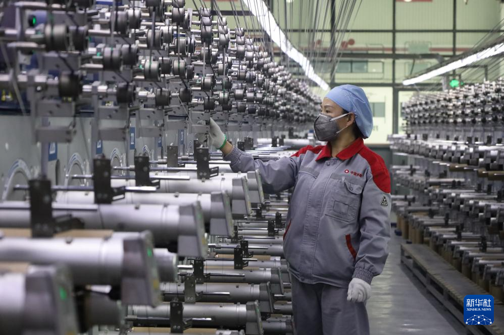 2月22日,在中復神鷹碳纖維西寧有限公司車間,工人在工作。新華社記者 王浡 攝