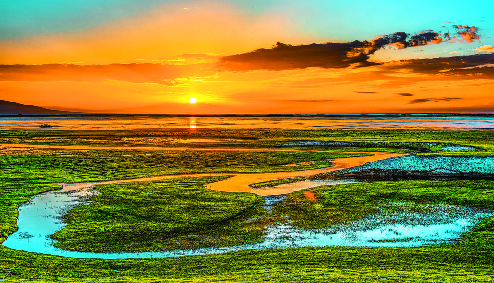 夕照青海湖。趙海梅 攝