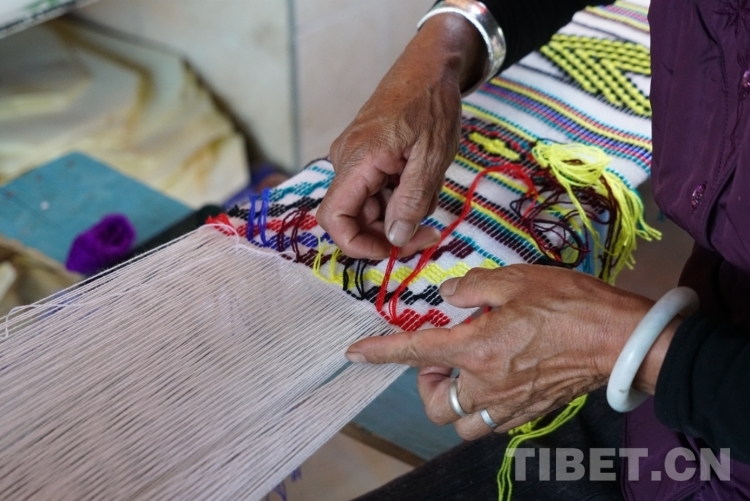 圖為阿七獨(dú)支瑪展示傳統(tǒng)手工紡織