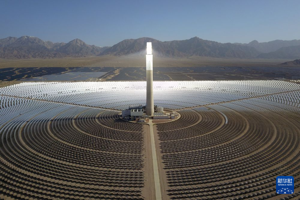 這是2022年6月8日在海西州德令哈市光伏(光熱)產(chǎn)業(yè)園拍攝的光熱電站(無人機照片)。新華社記者 范培珅 攝