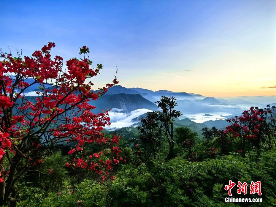 圖為杜鵑花在山野盛放,美如畫(huà)卷。伍排勇 攝