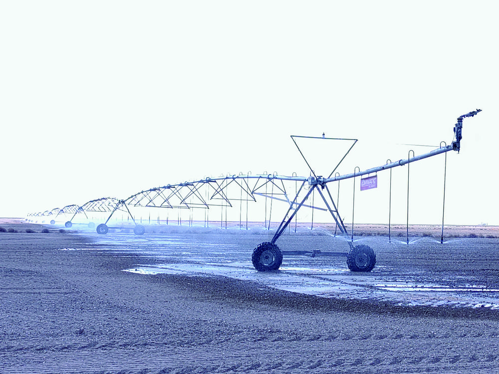 大型噴灌機行駛在鹽堿地。牛玉嬌 攝