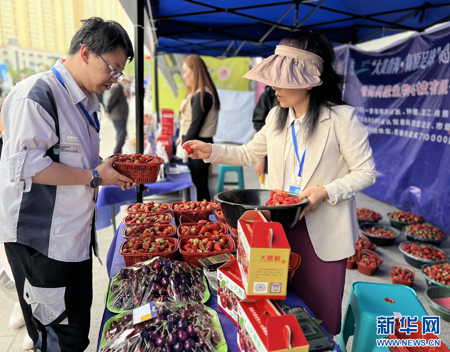市民在賽場外農(nóng)畜產(chǎn)品展示區(qū)購買農(nóng)產(chǎn)品。新華網(wǎng) 魚昊 攝