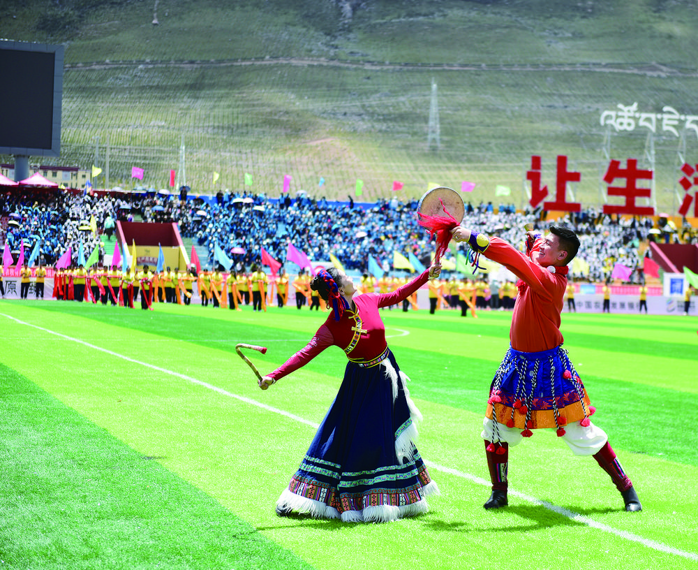 玉樹市民求培說:“玉樹足球是我們的驕傲,我自己也非常喜歡踢足球,今天特意過來為家鄉(xiāng)的球隊喝彩助威,希望他們可以在家門口取得勝利。”隨著一聲哨響,比賽正式開始,所有人的目光都聚焦在綠茵場上,隊員們奔跑如飛迅速進入“戰(zhàn)斗”狀態(tài)。一腳傳中、挑球過人……雙方互不相讓,積極拼搶。