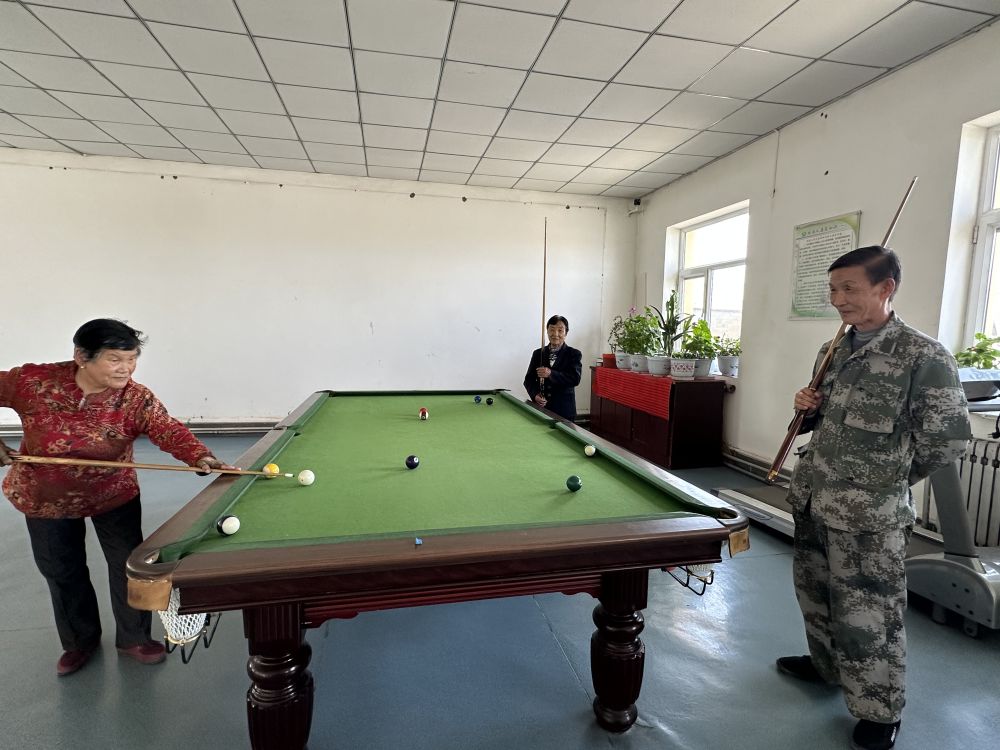 “在這兒吃住免費(fèi),飯有人做,衣服有人洗,每月還有100多元的養(yǎng)老金和零花錢?!痹诨顒?dòng)室里,王金蓮手握臺(tái)球桿,熟練推桿。入住敬老院后,運(yùn)動(dòng)成了她的生活日常。