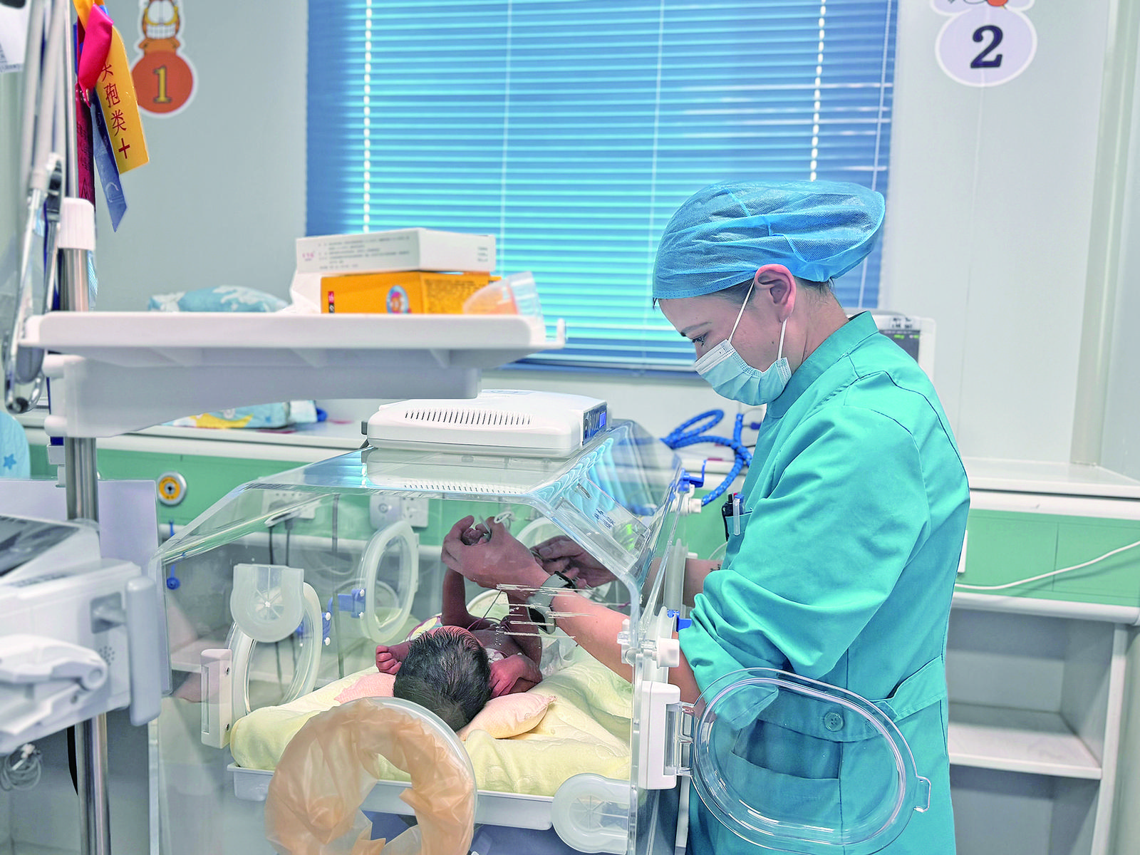果洛州人民醫(yī)院NICU病區(qū)里醫(yī)護(hù)人員精心照顧新生兒。亞君 余暉 攝