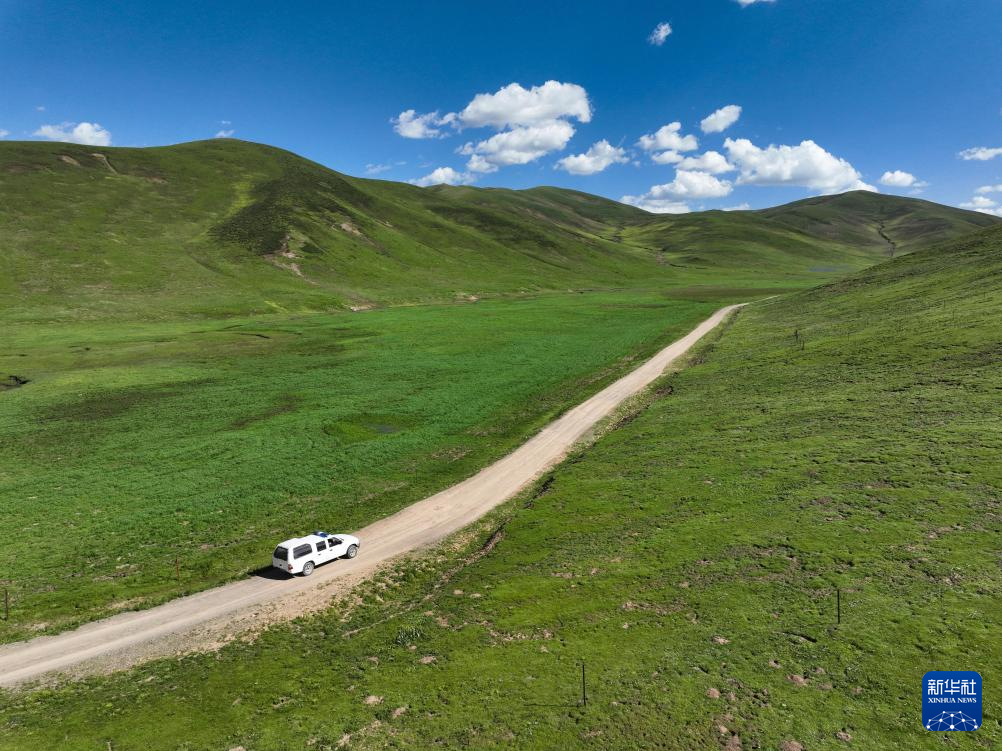 7月31日,青海省果洛藏族自治州達(dá)日縣窩賽鄉(xiāng)衛(wèi)生院醫(yī)療巡回車前往牧民夏季草場開展公共衛(wèi)生服務(wù)(無人機(jī)照片)。新華社記者 張龍 攝