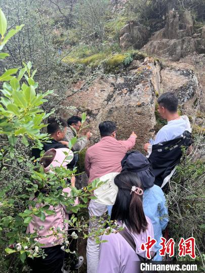 圖為科研調(diào)查隊解讀崖壁上的題記。葉拉太 供圖