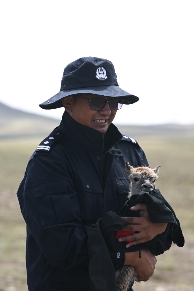 “你在哪里?趕緊把它抱回來,我們?nèi)フ夷??!眳⑴c巡山的青海省公安廳森林警察總隊曲麻萊森林公安局局長秋松多杰拿起對講機,一邊喊一邊朝多結(jié)仁欠的方向跑去。