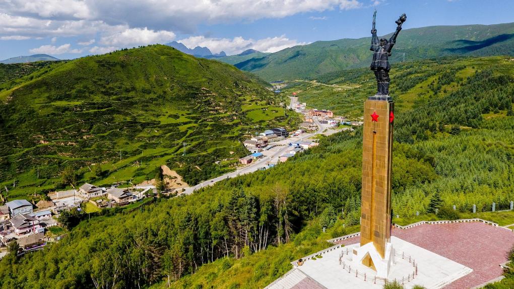 位于松潘縣川主寺鎮(zhèn)的紅軍長(zhǎng)征紀(jì)念碑(資料圖)。新華社記者 王曦 攝